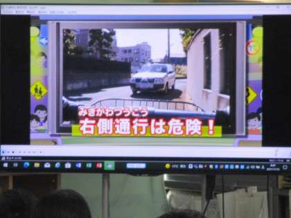 11月16日、朝のはげみの時間に東成警察署よりお借りした交通安全教室のDVDを観ました。