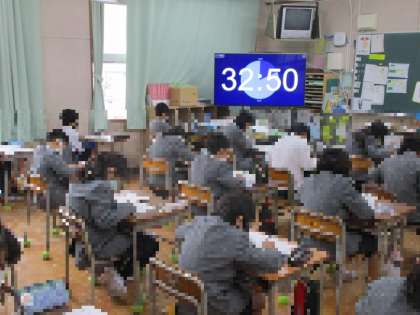 2時間目が国語、3時間目が社会の実施で、どの学年の児童も集中して取り組んでいました。明日2日目は算数・理科・英語(5・6年のみ)を予定しています。