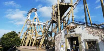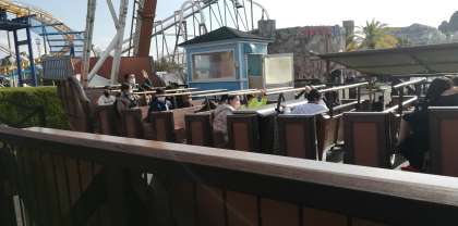 青空のもと、アトラクションを楽しんでいます!