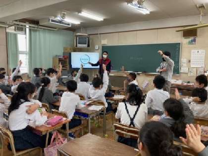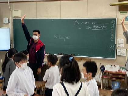3年生から6年生は毎週金曜日に授業があります。今日はどの学級でも、新しいC-NETの先生との自己紹介ゲームでは、「My name is〜. I like〜.」の話型を用いて自分のことを伝える活動を楽しみました。
