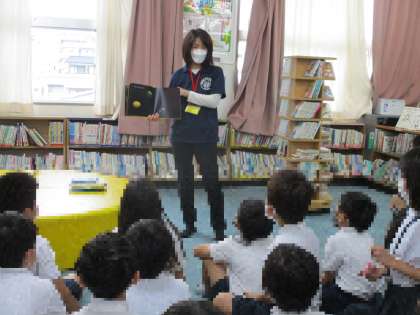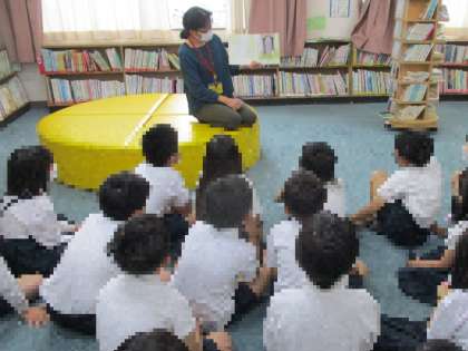 絵本読みボランティアさんによる絵本の読み聞かせが始まっています。