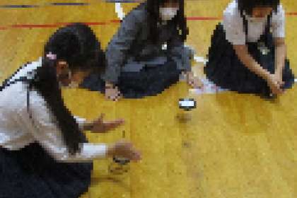 2組では今日、おもちゃに下敷きで風を当てて走らせたり、独楽回しをしたりして遊びました。
