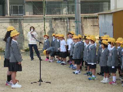 6年生代表の歓迎のことば、1年生の元気なあいさつで終了しました。