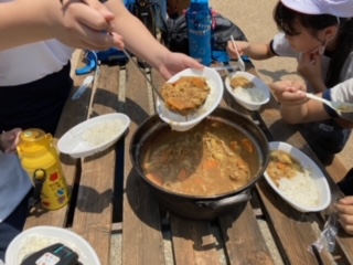 野外すい飯で、どの班も美味しくカレーを作ることができました。