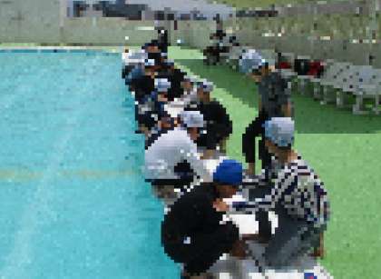 6月28日、赤十字防災ボランティアの先生方をお招きして、5・6年生が着衣水泳体験を実施しました。