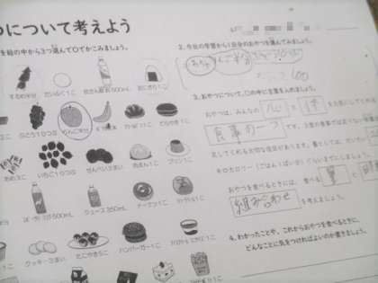 今回は「おやつについて考えよう」というめあてで学びました。