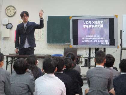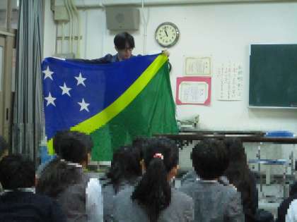 ビブリオバトルを通して、ソロモン諸島での読書を推進する活動についてお話してもらいました。また、ソロモン諸島の文化やおいしかった食べ物などクイズ形式で教えてもらい、子どもたちはとても驚いていました。