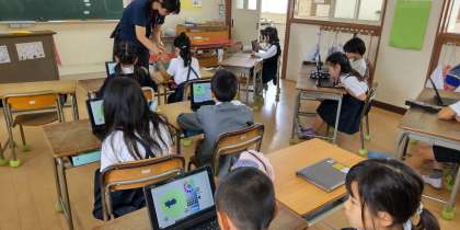「ビスケット」というプログラミングアプリを使って、アニメーションづくりに挑戦しました。