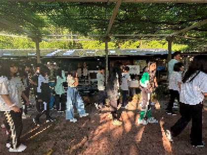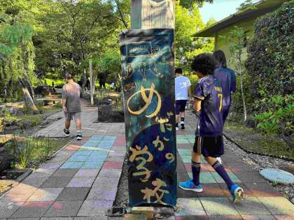 みんな元気に2日目の朝を迎えました。起床後、屋上にあるめだかの学校へ散歩しました。