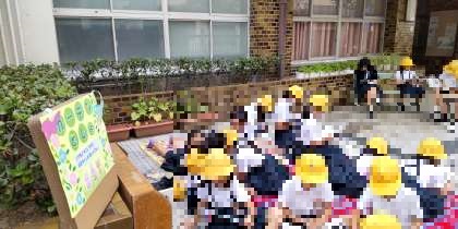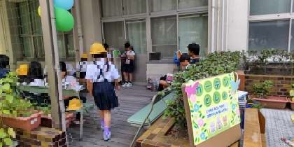 児童図書委員会の計画で、「ガーデン読書」の場が開かれました。