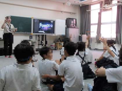 最初に、小学生1人あたり年間どれくらいの税金が教育費として使われているかというクイズがあり、約97万円も使われていることを知って、みんな驚いていました。