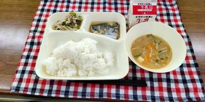<さごしのおろじょうゆかけ みそ汁 野菜いため ごはん 牛乳>