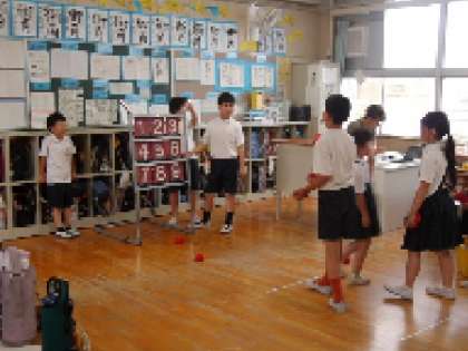 各班とも工夫したお店を考え、「おっとっとボール」「10秒チャレンジ」「ねらって当てろドッジビー」など楽しい名前のお店が並びました。
