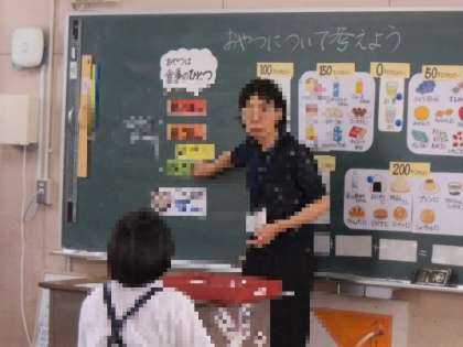 7月1日、4年生が他校の栄養教諭に来てもらい、食に関する学習を実施しました。