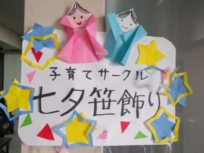 前半は、地域の未就学児や乳幼児の子たちへ作ってあげました。好きな色や形を聞いて飾りをつけたり、願いごとを聞いて書いてあげたりしてできた笹かざりをプレゼントしました。