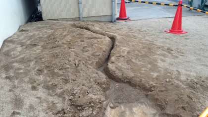 さて、上の写真は、何の写真だと思いましたか?これは、5年生理科の「流れる水のはたらき」の学習で、川の流れを調べるときに準備するものです。給食室の西側の土山を利用して、ミニチュアの川を作りました。人口川に水を流し、水の流れ方で川の様子がどのように変化していくのかを観察していきます。