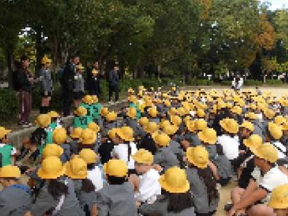 11月8日、雨天で延期していた全校オリエンテーリングが大阪城公園で実施できました。