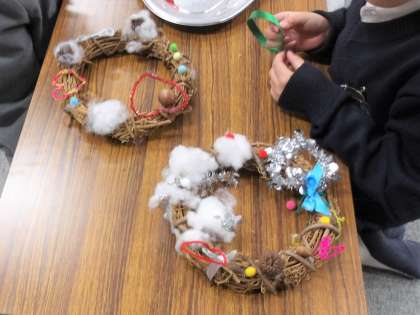 1年 クリスマスリース作り(地域・子育てサークルのみなさんと)