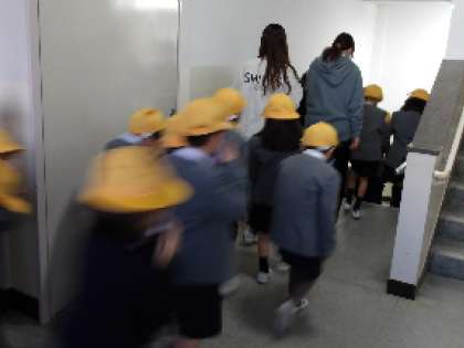 校内工事中のため、それも考慮に入れた避難経路で避難しました。
