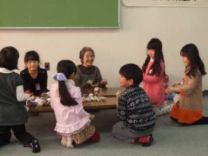 1月22日(金)、1年生が「むかしあそびのかい」で地域の栄寿会の方に、日本の昔ながらの遊びを教えてもらいました。こま、はごいた、お手玉、おはじき、のコーナーを子ども達が回っていき、遊びを楽しみました。各コーナーには栄寿会の方がいらっしゃって、手取り足取り親切に教えてくださいました。遊びを楽しむ微妙なこつを教えてもらい、ゲーム機とは違い、体を動かしながら、頭も使う遊びに子ども達は夢中になっていました。また、これまでにこれらの遊びを経験したことのある子が友達に教えてあげる場面も見受けられました。昔ながらの遊びの素朴な楽しさとそこから生まれるコミュニケーションの面白さを味わった会になりました。