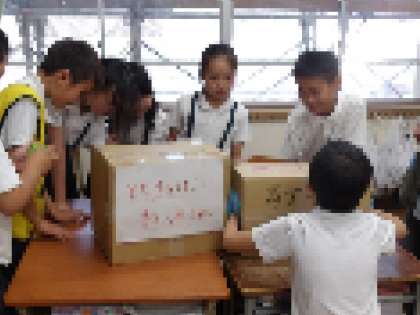 にじいろ集会の時間を使って、6年生のリーダーを中心として計画を進めてきました。前日には、机の移動をしたり出入り口の看板やルール説明を紙に書いたりして、しっかりと準備をしました。