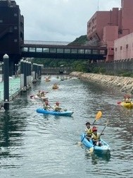 初めてカヌーに乗る児童も多く、子どもたちのドキドキが伝わってきます。