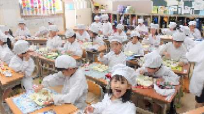 1年生はみんな上手にご飯やおかずをよそったり、運んだりすることができるようになりました。