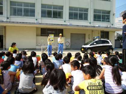 5月23日(月)本日の児童朝会であんパトの方が「青パト」について紹介されました。あんパトの方は「安全で安心して暮らせるまち・東成」をめざし、区内全域を自転車や青パト、徒歩でパトロールしています。特に、子どもが犯罪に巻き込まれないように、小学校の通学路や子どもが集まる公園周辺などのパトロールをしてくださっています。学級としても大変感謝しています。