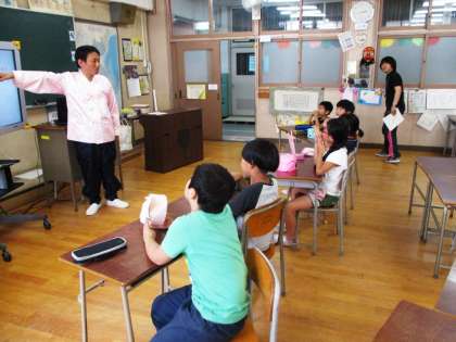 5月26日(木)2年生と3年生の民族学級の授業参観がありました。和気あいあいとした雰囲気のなか、子ども達は動物の名前や鳴き声のウリマルついて学びました。授業の最後はトンムル(動物)の歌を元気よく歌いました。