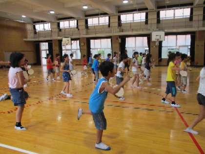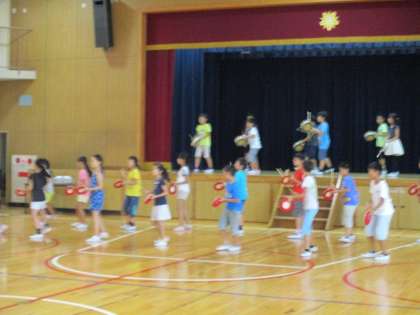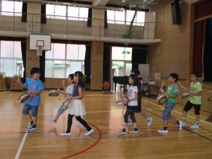 子ども達は、締め太鼓や小太鼓の楽器を持って音楽に合わせて踊りを踊る練習に熱心に取り組んでいました。沖縄の文化に触れることができ、とてもよい経験になりました。今から本公演が楽しみです。