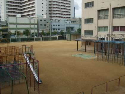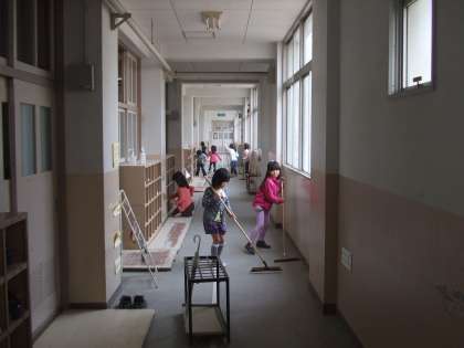 写真にある通り、給食後すぐに清掃活動を行い、終了後すぐに下校しました。子どもが帰った後は、いつもはたくさんの子どもたちが遊んでいる運動場も、閑散としています。