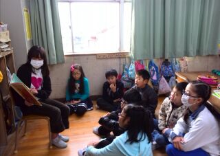 本番、少し緊張していましたが、聞き手のよい態度と何かあればフォローしてくれる先輩6年生の存在もあり、5年生の子ども達は、絵本の読み聞かせを頑張って行いました。