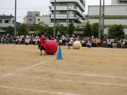 ・団体競技:1年 玉入れ 2年 大玉ころがし 3,4年 棒引き 5.6年 騎馬戦