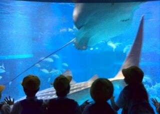 海遊館ではにじいろ班のメンバーでグループを組み2年生が1年生のことを気遣いながら楽しく見学することができました。