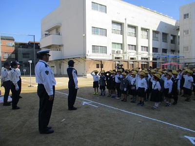 11月8日(木)交通安全教室を実施しました。東成警察と大阪府交通安全協会より指導に来ていただきました。