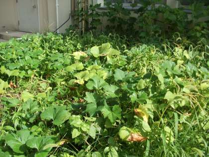 学校では、学習園の植物たちが暑さの中生い茂っています。