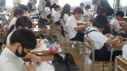写真上から、4年保健「変化してきたわたしたちの体」、5年理科「ヒトのたん生」、6年図工「わたしのくつ」の様子です。