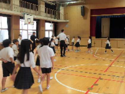 警察の方が扮する不審者の対応をする職員と児童監護をする職員に分かれ対応訓練の後、児童は講堂へ避難しました。