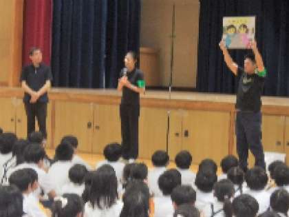 その後、警察の方から自分の命を守る5つの約束と、子ども110番のお家のことについて、わかりやすく教えてもらいました。