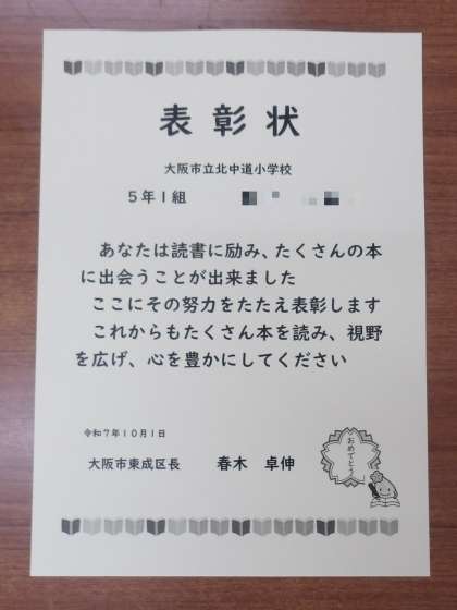 東成区の今年度の取り組みとして、読書カードの記録して読書50冊を目標にする取り組みを行っています。9月27日の児童朝会でも、50冊を達成した児童の表彰を行いました。12月にも表彰があります。秋の夜長、家族で本を開いてみませんか。