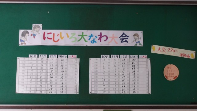 10月から毎月1回集会の時に大なわ跳びに挑戦してきました。どの班も上手に跳んだり、通過したりできるようになってきました。