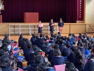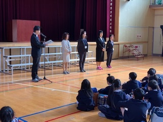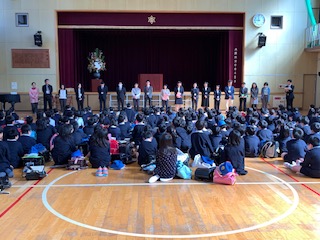 まずは、新しい先生を迎える着任式です。新しい先生を迎え、中本小学校も新しいスタートとなります。