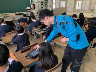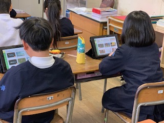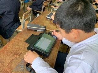 4年生の教室をのぞくと、タブレット端末を使っての授業を行っていました。