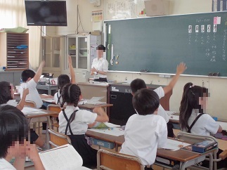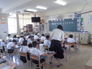 3年生は国語「漢字の組み立てと意味を考えよう」です。1年生・2年生と漢字を積み重ねてきた3年生は、漢字の部首や形の意味について学んでいました。