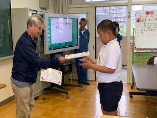 学習の最後は、環境局から「しっかり学ぶことができました!」の賞状をいただきました。社会としての学習、また日々の生活にも、今回学んだことをいかしてほしいと思います。