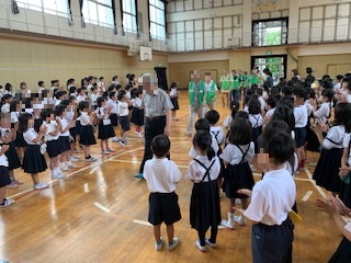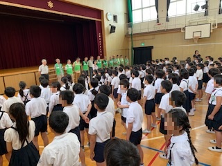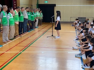 終業式に引き続き、ふだんの子どもたちの登下校を見守ってくださる見守り隊のみなさんにお礼の気持ちを伝えました。