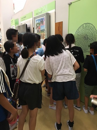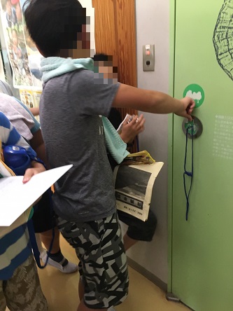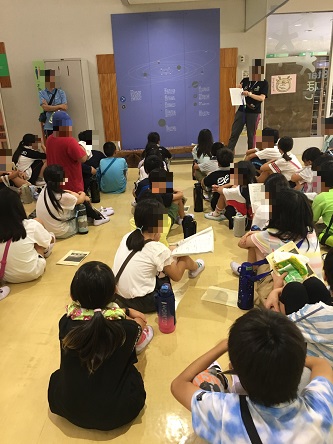 昼食が終わり、午後の活動のスタートは館内オリエンテーリングです。施設内のさまざまな場所にあるポイントを見つけ、クイズに答えていきます。