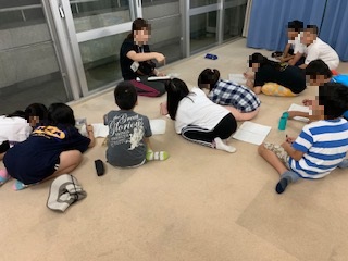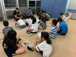 最後にリーダー会議です。5・6年生混合で作られる活動班、部屋で活動する生活班、それぞれのリーダーが1日の反省と次の日の活動についての連絡を受けます。