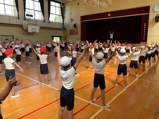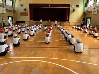 今回使用する曲を紹介し、さっそく練習です。どんな演技になるのでしょうか。楽しみです。保護者のみなさまも、お家で「どんな曲なん?」「がんばれ!」応援をお願いします。