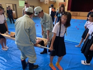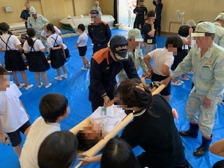 土曜授業として、中本消防署の協力のもと、中本地域のみなさんといっしょに、防災訓練を行いました。